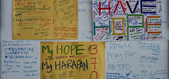 Fotografie di chi cerca e di chi attende negli aeroporti di Kuala Lumpur e Pechino, nella speranza che i passeggeri siano ancora vivi o che rispondano a un cellulare