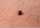 Un uovo di pidocchio su un capello, un torace con un cuore artificiale, una zecca sulla gamba del fotografo