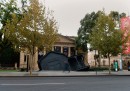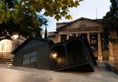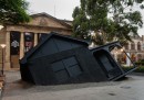 Landed è un’installazione realizzata dall’artista australiano Ian Strange in occasione della Biennale d’arte australiana di Adelaide, la più importante esposizione d’arte contemporanea del paese, in corso dal primo marzo all’11 maggio. Si tratta di una casa, costruita su modello delle tipiche abitazioni australiane del 1920, che sembra caduta dal cielo e piombata davanti alla Art Gallery of South Australia, dove si svolge la biennale. L’edificio, completamente nero, contrasta con l’architettura neoclassica del museo. Strange – che ha usato come modello la sua casa d’infanzia – spiega che «l’opera allude anche in modo giocoso e diretto al Mago di Oz e all’improvvisa comparsa della cultura occidentale in Australia».