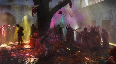 Il 10 marzo nello stato settentrionale indiano dello Uttar Pradesh si è festeggiato Lathmar Holi, in particolare nei villaggi di Barsana e Nandgaon: secondo la tradizione, il dio Krishna – del villaggio di Nandgaon – fece visita alla sua amata Radha a Barsana, ma una volta arrivato prese in giro lei e le sue amiche, offendendole e venendo così cacciato. Per questo motivo durante la festa gli uomini di Nandgaon vanno a pregare nel tempio di Radha a Barsana, dove vengono ricoperti di vernici colorate dagli uomini della città e picchiati con bastoni dalle donne, mentre tutt’intorno gli abitanti del villaggio si lanciano polveri colorate, cantano e ballano.