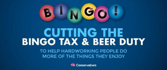 L’immagine promozionale è stata pubblicata su Twitter dal parlamentare e presidente del partito conservatore Grant Shapps. Dice che i tagli alle tasse sul bingo e sulla birra «aiutano le persone che lavorano parecchio a dedicarsi di più alle cose che gli piacciono».