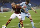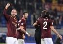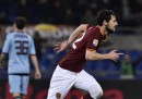 La Roma ha battuto il Torino per 2-1 nell’anticipo della trentesima giornata della Serie A. La Roma è andata in vantaggio nel primo tempo con un gol – in leggerissimo fuorigioco – di Mattia Destro, il Torino ha pareggiato nel secondo tempo con un bellissimo sinistro al volo di Ciro Immobile. Al novantunesimo minuto della partita, quando il Torino sembrava essere riuscito a respingere tutti gli attacchi della Roma, Alessandro Florenzi ha segnato il gol del 2-1. Con questa vittoria la Roma ha consolidato il suo secondo posto in classifica, portandosi a nove punti dal Napoli a parità di partite giocate.