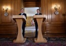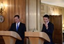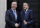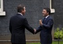 Dopo l’incontro al 10 di Downing Street, la residenza del primo ministro del Regno Unito, Cameron e Renzi hanno tenuto una conferenza stampa. Cameron ha detto di essere “ansioso di collaborare con Matteo nel prossimo futuro”, dicendo di essere interessato alle “riforme ambiziose” che ha annunciato per l’Italia, sia sul piano delle istituzioni sia su quelle del lavoro per stimolare l’occupazione. Renzi ha ricordato che per quanto riguarda il problema della disoccupazione “c’è ancora molto da fare” e ha fatto un confronto tra i dati sul lavoro britannici e quelli italiani: “Nel 2011 il Regno Unito era all’11 per cento di disoccupazione e l’Italia era all’8,4 per cento; ora loro sono al 7 per cento e noi al 12,3 per cento”. Renzi ha detto che “in questi anni abbiamo perso troppa strada” e che è arrivato il momento di “rimettersi a correre”.