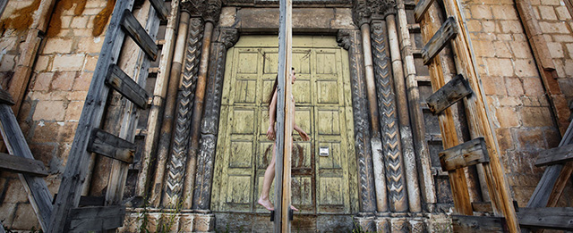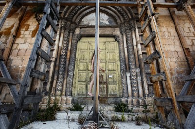 Il progetto del fotografo Paolo Porto, che ha infilato corpi tra le rovine a cinque anni dal terremoto