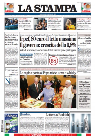 Le prime pagine di venerdì 4 aprile 2014