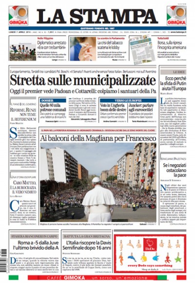 Le prime pagine di lunedì 7 aprile 2014
