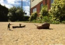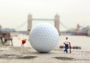 Roy Tyson è un artista inglese che realizza quadri metropolitani con personaggi in miniatura. Tutto ebbe inizio qualche anno fa, con l’installazione di tre statuine e uno scarabeo imbalsamato su una spiaggia: voleva solo mostrare una scena “familiare” ma il successo dell’installazione lo spinse a sviluppare il progetto e a esplorare il concetto dei “mondi in miniatura” dei suoi personaggi. Tyson ha creato così diverse “scene” metropolitane, dal tono spesso surreale, in cui i piccoli protagonisti interagiscono con i particolari del paesaggio urbano: scalano una grattugia, sparano a una lumaca, usano mozziconi di sigarette come zattere.
