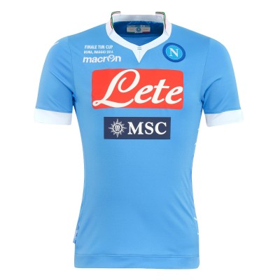 La squadra di calcio del Napoli ha presentato una maglia speciale che sarà utilizzata dai giocatori soltanto durante la finale di Coppa Italia contro la Fiorentina, che si giocherà allo Stadio Olimpico di Roma il prossimo 3 maggio. La maglia ha il tradizionale colore azzurro ma i numeri dorati, un bordino con un colletto tricolore e la scritta “FINALE TIM CUP” davanti. Ne saranno prodotte solo 1926 (come l’anno di fondazione della società).