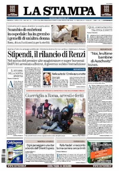 Le prime pagine di domenica 13 aprile 2014