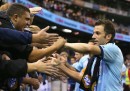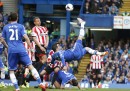 Un’altra foto circolata molto online raffigura un arbitro di calcio di Premier League, Chris Foy, che durante la partita tra Newcastle United e Swansea è stato centrato in pieno volto da una forte pallonata: è rimasto a terra pochi istanti – si è ripreso quasi subito, e stava bene – ma qualcuno ha avuto il tempo di fotografarlo prima che si rialzasse.