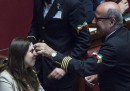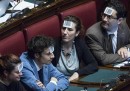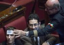 Tra le foto di oggi dalla Camera ci sono diversi deputati del Movimento 5 Stelle con dei codici a barre appiccicati sulla fronte e sulla bocca, simbolo di “lavoratori trattati come merce”. Ma ci sono anche foto di Pierluigi Bersani sorridente, e Fabrizio Cicchitto molto assonnato (e non fa niente per nasconderlo).