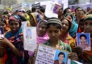Il 24 aprile del 2013, esattamente un anno fa, a Dacca, capitale del Bangladesh, crollò un palazzo di nove piani, il Rana Plaza, causando la morte di 1.138 persone. Oggi nella città bengalese è stata organizzata una manifestazione in ricordo delle vittime e dei sopravvissuti, in cui i partecipanti hanno chiesto anche che vengano pagati i risarcimenti promessi alle famiglie dei morti: a distanza di un anno, infatti, le società coinvolte in qualche modo alle attività dei laboratori di vestiti presenti nel palazzo non hanno ancora versato oltre la metà dei risarcimenti promessi. Diversi manifestanti hanno anche chiesto al governo di aiutare le autorità competenti ad analizzare il DNA di 140 corpi che non sono ancora stati identificati.