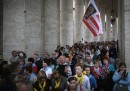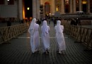 Alle 10 di domenica 27 aprile comincerà la cerimonia di canonizzazione di Giovanni Paolo II (Karol Wojtyla, papa dal 1978 al 2005) e di Giovanni XXIII (Angelo Giuseppe Roncalli, papa dal 1958 al 1963). La canonizzazione è il processo con cui si viene proclamati santi, ed è uno tra i più importanti (e complessi) della Chiesa Cattolica. Già dalla mattina di sabato 26 aprile migliaia di pellegrini si sono riuniti in piazza San Pietro, nella Città del Vaticano, in attesa della cerimonia di domenica, a cui prenderanno parte sia papa Francesco, Jorge Mario Bergoglio, che il papa emerito Benedetto XVI, Joseph Ratzinger, che ha lasciato il papato il 28 febbraio 2013. Avvenire scrive che quella di domani sarà «la prima messa nella storia concelebrata da due Pontefici, uno in carica e uno emerito».