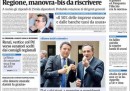La maggior parte dei giornali di oggi dedica l’apertura alle parole di Silvio Berlusconi, che ieri in un’intervista televisiva ha attaccato il Presidente della Repubblica Napolitano per non avergli concesso spontaneamente la grazia, e alle reazioni alle sue precedenti dichiarazioni sui lager e la Germania. Il Corriere della Sera, il Messaggero e il Secolo XIX titolano invece sulla riforma della pubblica amministrazione che dovrebbe essere affrontata dal governo nel consiglio dei ministri di domani, mentre il Manifesto si occupa della condanna a morte per 683 militanti islamisti in Egitto. I quotidiani sportivi aprono sulla vittoria contro il Sassuolo della Juventus, ormai sicura della vittoria dello scudetto.