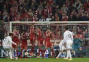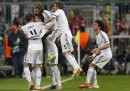 Il Real Madrid è la prima finalista della Champions League, il più importante torneo di calcio per club in Europa. Martedì 29 aprile si è giocato a Monaco di Baviera il ritorno della semifinale fra Bayern Monaco e Real Madrid e proprio il Real Madrid, che aveva vinto all’andata per 1-0, ha vinto addirittura per 4-0. Non c’è stata molta storia: il Real era in vantaggio di due gol già dopo diciannove minuti, grazie a due colpi di testa del difensore Sergio Ramos. La partita si è praticamente chiusa al 34esimo del primo tempo, dopo che una bellissima azione di contropiede fra Karim Benzema, Gareth Bale e Cristiano Ronaldo – con gol di quest’ultimo – aveva reso necessario al Bayern segnare almeno cinque gol per passare il turno.
