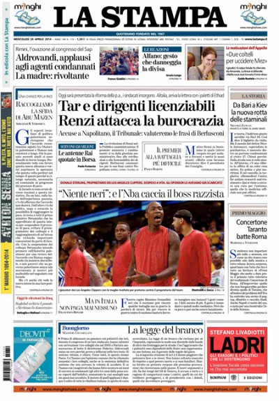 Le prime pagine di mercoledì 30 aprile 2014