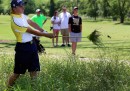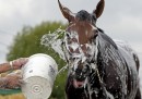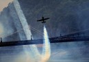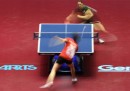 Tra le fotografie di sport più belle della settimana ci sono atleti di ping pong velocissimi a muoversi in spazi molto, molto ristretti: nessuno di loro perde mai di vista la pallina, che sembra sospesa in aria, e la concentrazione è massima. Un’altra bella fotografia – e qui ce ne sono altre – mostra un cavallo insaponato al termine di una sessione di allenamento, prima di partecipare al Kentucky Derby, una delle più antiche e prestigiose corse di cavalli degli Stati Uniti. L’edizione di quest’anno è stata vinta da un cavallo che era tra i principali favoriti, “California Chrome”, ma alcuni commentatori hanno trovato la corsa meno veloce rispetto ad altre edizioni recenti. E poi c’è un’acrobazia incredibile del pilota ungherese e campione europeo Zoltan Veres, che col suo aeroplano MXS passa sotto al ponte “Lanchid” di Budapest.