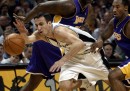 Gli Spurs passano la palla più di qualsiasi altra squadra NBA, e praticamente tutti i passaggi vengono fatti per creare un “tiro aperto”, risultato di un movimento-palla che costringe la difesa a spostarsi e lasciare degli spazi ai tiratori avversari. Nella stagione regolare ha beneficiato di questo tipo di gioco soprattutto l’italiano Marco Belinelli, che è stato per diverso tempo al primo posto nella classifica dei migliori tiratori da tre punti di tutta la NBA. In gara-2 un altro giocatore, Danny Green, ha mantenuto eccellenti percentuali al tiro grazie soprattutto alla circolazione di palla di squadra. Tipo questa (il passaggio è di Manu Ginobili, ed è assolutamente notevole per visione del campo, potenza e precisione):