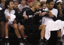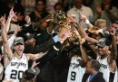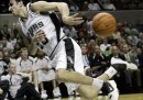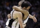 Il 21 maggio, con la vittoria dei San Antonio Spurs sugli Oklahoma City Thunder in gara-2 delle finali della Western Conference dei playoff NBA (National Basketball Association, la lega professionistica di pallacanestro di Stati Uniti e Canada), tre tra i più forti giocatori della NBA in circolazione hanno raggiunto un record storico. Il caraibico Tim Duncan, il francese Tony Parker e l’argentino Manu Ginobili – che giocano insieme nei San Antonio Spurs dal 2002 – sono arrivati a 111 partite vinte nei playoff giocando nella stessa squadra: hanno superato un terzetto storico, quello formato da Magic Johnson, Kareem Abdul-Jabbar e Michael Cooper dei fortissimi Los Angeles Lakers degli anni Ottanta. Duncan, Ginobili e Parker hanno vinto insieme tre titoli NBA e hanno buone possibilità di vincere il quarto quest’anno.