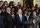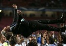 Alcune delle foto sportive migliori delle settimana sono arrivate dallo stadio “Da Luz” di Lisbona, in Portogallo, dove il Real Madrid ha vinto la Champions League battendo l’Atletico Madrid 4-1 alla fine di una partita indimenticabile per i tifosi di entrambe le squadre. Prima ancora che i giocatori del Real ritornassero a Madrid per i festeggiamenti tra le vie del centro, nello stadio di Lisbona sono state scattate alcune foto notevoli – come quella al centrocampista Gareth Bale, che urla di gioia, e quella all’allenatore Carlo Ancelotti, sollevato dai giocatori a fine partita. La partita è stata peraltro trasmessa in diretta anche negli stadi delle due squadre che partecipavano alla finale, e cioè allo stadio “Vicente Calderón”, dove gioca le partite l’Atletico, e allo stadio “Santiago Bernabeu”, dove invece le gioca il Real.