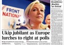 Molto spazio per Nigel Farage sui giornali del Regno Unito, e per Marine Le Pen su quelli francesi