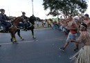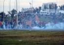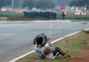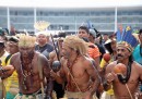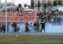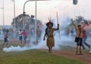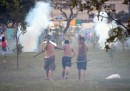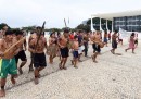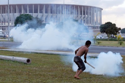 Martedì 27 maggio in varie zone di Brasilia, capitale del Brasile, gli indigeni di diverse etnie hanno protestato contro i Mondiali di calcio e per chiedere la demarcazione delle terre che occupano e che sono spesso invase da contadini, allevatori e grandi multinazionali. Secondo le autorità i manifestanti erano circa 1.500 – tra indigeni e attivisti – e hanno bloccato per ore una delle strade principali della capitale. Si sono poi diretti verso lo Stadio Nazionale, che ospiterà la prima partita dei Mondiali, e qui sono stati fermati dai poliziotti in tenuta antisommossa, che hanno lanciato gas lacrimogeni. Gli indigeni hanno cercato di rilanciarli indietro, insieme a sassi, pezzi di legno e frecce scagliate con gli archi: un poliziotto è stato ferito da una freccia. La protesta ha portato alla cancellazione della cerimonia di presentazione della Coppa, che si sarebbe tenuta davanti allo stadio. Attivisti hanno detto al giornale brasiliano Globo che due manifestanti sono stati feriti, ma non si sa dove e quanto gravemente. Gli scontri, a cui hanno partecipato circa 300 persone, sono continuati durante la notte.