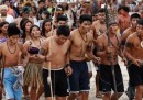 Un altro gruppo di indigeni si è arrampicato sul tetto del palazzo del Congresso Nazionale, disegnato dall’architetto brasiliano Oscar Niemeyer, altri hanno manifestato davanti alla Corte Suprema: in entrambi i casi chiedevano che le terre che occupano venissero demarcate al più presto, per proteggerle dagli allevatori di bestiame, dai contadini e dalle grandi industrie, e protestavano allo stesso tempo contro l’organizzazione dei Mondiali. La questione della demarcazione delle terre è molto dibattuta negli ultimi anni: molti criticano l’estensione delle terre riservate agli indigeni (il 13 per cento del territorio del paese per lo 0,4 per cento della popolazione totale) e la mancanza di sovranità del governo in quelle zone.