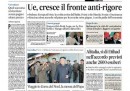 Non c’è una notizia unica in apertura sulle prime pagine dei giornali di oggi: si va dagli incontri a Bruxelles fra gli antieuropeisti Farage e Grillo e fra Salvini e Le Pen, alle ipotesi per rilanciare Forza Italia dopo l’insuccesso elettorale, alle mosse di Renzi per rilanciare le riforme in Italia e attenuare le politiche di rigore europee, all’arrivo in Italia dei bambini adottati in Congo, ai nuovi dati Istat sulle famiglie italiane.