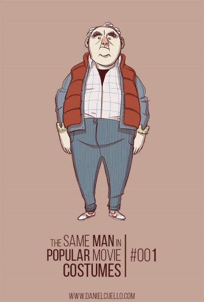 Daniel Cuello è un giovane fumettista, illustratore e blogger di origini argentine che vive e lavora in Italia da molti anni. In passato alcuni suoi lavori sono stati esposti in diverse mostre, a Udine e a Bologna, e utilizzati come copertine per alcune riviste o come fotogrammi nel montaggio di alcuni cortometraggi per il web. In uno dei suoi ultimi progetti, molto divertente e ben fatto, ha realizzato una serie di illustrazioni che raffigurano la stessa persona vestita con abiti diversi, e ciascun abbigliamento è una citazione di un film diverso. Il soggetto disegnato è sempre lo stesso: una sorta di uomo-manichino, piuttosto grasso, e sempre nella stessa posizione.