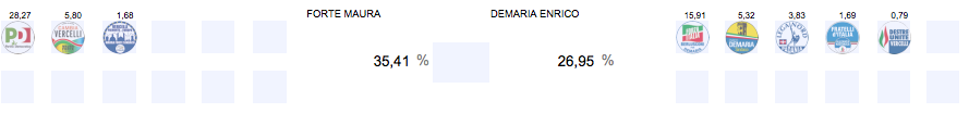 Maura Forte del centrosinistra è in vantaggio su Enrico Demaria del centrodestra. Sono ancora in corso le trattative per gli apparentamenti del secondo turno e sembrano essere piuttosto complicate, soprattutto per il centrosinistra. Demaria è certo sarà invece sostenuto da liste che non hanno superato il 3 per cento dei voti al primo turno.