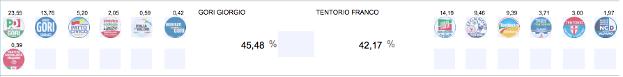 Il ballottaggio sarà fra due donne: Silvia Marchionini del centrosinistra e Mirella Cristina del centrodestra. Marchionini ha ottenuto quasi il triplo dei voti di Cristina ed è favorita.