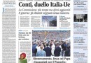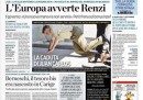 Oggi tutti i giornali aprono sulla richiesta della Commissione Europea all’Italia di fare più sforzi per ridurre il debito già nel 2014, per rendere strutturali le riforme avviate, e sulla concessione del rinvio del pareggio di bilancio al 2016 per l’Italia. Le uniche eccezioni sono il Tempo, che si occupa del messaggio video dei due marinai italiani trattenuti in India, e il Fatto, che apre sulla nomina del nuovo direttore dell’Agenzia delle Entrate.