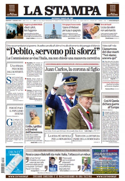 L'Europa chiede all'Italia di fare di più per il debito, il re di Spagna abdica, e il messaggio dall'India dei due marinai