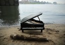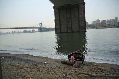 Lunedì scorso sui social network sono comparse foto e video di un pianoforte Mason & Hamlin abbandonato a New York, sulla spiaggia lungo l’East River dalla parte di Manhattan, sotto il ponte di Brooklyn. In particolare un video di martedì mostra una ragazza che lo suona, mentre il pianoforte è mezzo sommerso dall’acqua dell’alta marea. Da allora molte persone sono andate a fotografarlo e fotografarsi, a girare video e a provare a suonarlo: il pianoforte però è piuttosto danneggiato e non produce alcun suono.