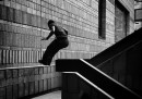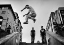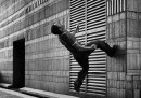 Il fotografo francese Alexandre Chamelat ha scattato una serie di fotografie in bianco e nero molto suggestive che ritraggono diversi professionisti del parkour mentre sono in volo o mentre si arrampicano sulle pareti, oppure mentre si danno la spinta. Un po’ di tempo fa circolò anche un bel video girato dal punto di vista di chi fa parkour.