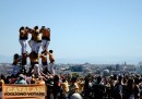 Domenica 8 giugno, intorno alle 12, alcuni ragazzi catalani si sono riuniti nella zona del Gianicolo, in piazza Garibaldi a Roma, per formare insieme una “torre umana” per promuovere il referendum sull’indipendenza della Catalogna – la comunità autonoma spagnola – inizialmente previsto per il 9 novembre 2014 ma riguardo al quale il parlamento spagnolo aveva votato contro nello scorso aprile. Il referendum dovrebbe stabilire se la Catalogna diventerà uno stato indipendente, staccandosi quindi dalla Spagna. I “castells” – come vengono definiti in catalano questi castelli umani – sono una delle manifestazioni culturali tipiche della tradizione catalana: possono raggiungere anche i 9-10 “piani” di persone e vengono riproposti in Catalogna in occasione di numerose feste tradizionali. Nel 2010 sono stati dichiarati dall’UNESCO uno dei patrimoni “orali e immateriali” dell’umanità. Altri castelli umani sono stati formati oggi, alla stessa ora e con le stesse motivazioni, in altre città d’Europa tra cui Lisbona, Barcellona, Parigi, Londra, Berlino, Bruxelles e Ginevra.