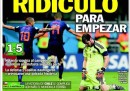 Venerdì sera l’Olanda ha battuto 5-1 la Spagna campione del mondo nella prima partita del girone B dei Mondiali di calcio. Un risultato molto netto e inaspettato: e la differenza di umore tra spagnoli e olandesi è ben rappresentata dalle prime pagine dei loro giornali di sabato mattina.