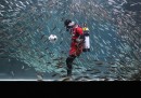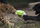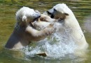 L’estate sembra essere arrivata proprio per tutti, come si vede nelle foto di animali più belle della settimana: molti infatti cercano un po’ di fresco, come un piccolo orso polare che si tuffa in una vasca dello zoo di Hellabrunn a Monaco di Baviera, o un elefante che viene rinfrescato nel suo recinto allo zoo di Ústí nad Labem, in Repubblica Ceca. Altri animali, invece, ci ricordano che sono iniziati i Mondiali di calcio in Brasile: due giaguari “giocano” con un pallone da calcio (o con quello che ne rimane) allo zoo di Santa Fe a Medellin, in Colombia, e un gallo vestito coi colori verde-oro del Brasile posa fiero accanto a una riproduzione della coppa del Mondo davanti allo stadio Maracana di Rio de Janeiro.