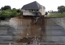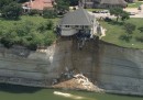 Le foto spettacolari di una villa sotto cui è crollato il terreno, tanto da costringere il proprietario ad abbandonarla e distruggerla