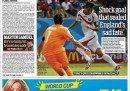 L'umore opposto nei titoli dei giornali, dopo la vittoria del Costa Rica (“Sele mata Campeones!”) che ha eliminato l'Inghilterra dal Mondiale (“Thanks for nothing, Mario…”)