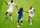 Pirlo giocò anche due partite di quell’Europeo (quello del famoso “biscotto” fra Danimarca e Svezia) fra cui l’ultima – e inutile – vittoria contro la Bulgaria per 2-1: quella in cui Cassano segna, esulta, poi guarda le facce della sua panchina e si mette a piangere. Nel ciclo successivo, quello dei Mondiali 2006 con Marcello Lippi in panchina, Pirlo – ormai insostituibile – giocò la maggior parte delle partite. Ai Mondiali del 2006 giocò sempre e segnò il primo gol dell’Italia al torneo, contro il Ghana: un gran tiro da fuori, strano, quasi di piatto eppure potentissimo e praticamente imparabile. Per molti, però, il Mondiale di Pirlo sta tutto nell’assist geniale che fece per Fabio Grosso, trovato da solo in mezzo dell’area al 119esimo minuto della semifinale contro la Germania.