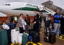 La Nazionale italiana di calcio, eliminata il 24 giugno dai Mondiali di calcio, è atterrata giovedì mattina all’aeroporto di Malpensa, vicino Milano, di ritorno da Mangaratiba, in Brasile. Nelle foto c’è comprensibilmente qualche faccia triste, complice anche il lungo viaggio e il tempo lattiginoso di Milano.