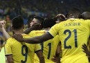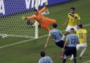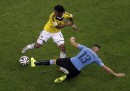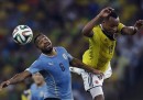 Colombia-Uruguay è finita 2-0 con una prevalenza indiscutibile della Colombia che si è quindi qualificata per i quarti di finale contro il Brasile, che aveva battuto faticosamente ai rigori il Cile poche ore prima. I due gol della Colombia sono stati entrambi di James Rodriguez, che ora ha fatto cinque gol ed è il miglior marcatore del Mondiale: il primo al 28′ del primo tempo con un gran controllo, rotazione e tiro al volo di collo da fuori area, spettacolare. Il secondo al 5′ del secondo tempo al termine di una rapida azione in area con bella sponda di testa di Cuadrado. L’Uruguay ha giocato alla pari solo fino al primo gol, poi è calato molto: dopo aver eliminato l’Italia, lascia i Mondiali.
