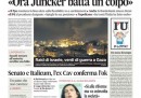 I principali giornali in edicola oggi si occupano in apertura ancora della polemica sulla flessibilità sui conti pubblici fra il Presidente del Consiglio Renzi e il PPE che, dopo il discorso di apertura del semestre europeo a Strasburgo, ieri ha visto l’intervento del presidente della Bundesbank che ha accusato Renzi di voler dire a loro cosa fare. Il Manifesto e il Tempo aprono invece sull’uccisione a Roma di un imputato nell’inchiesta Telecom Sparkle-Fastweb, Libero indaga sui costi della ricostruzione in Irpinia, Europa, Avvenire e il Gazzettino titolano sull’incontro fra Renzi e Berlusconi per confermare il cammino delle riforme.