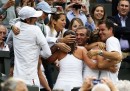 Le tenniste italiane Sara Errani e Roberta Vinci hanno vinto il torneo doppio femminile di Wimbledon, il più importante al mondo tra quelli che si giocano sull’erba. Errani e Vinci hanno battuto 6-1 6-3 la tennista ungherese Timea Babos e la francese Kristina Mladenovic. Le tenniste italiane hanno vinto cinque volte un torneo dello Slam, cioè uno dei quattro tornei più importanti (oltre Wimbledon, gli altri sono US Open, Australian Open e Roland Garros): e Wimbledon era l’unico tra questi tornei che dovevano ancora vincere in carriera. Errani e Vinci sono considerate al momento la coppia più forte al mondo nel doppio femminile.