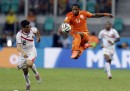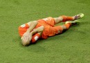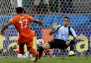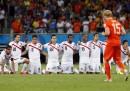 Olanda-Costa Rica è finita 4-3 dopo i calci di rigore: era una partita dei quarti di finale del Mondiale di calcio, e si giocava all’Arena Fonte Nova di Salvador de Bahia. I tempi regolamentari, e poi quelli supplementari, sono finiti 0-0: l’Olanda ha ampiamente dominato, sbagliando incredibilmente dei gol molto facili. Poi negli ultimi minuti del secondo tempo supplementare anche il Costa Rica ha avuto un paio di grandi occasioni per segnare un gol, senza però riuscirci.