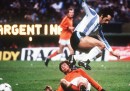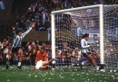 La finale dei Mondiali del 1978 iniziò alle 15 – ora locale – allo stadio Monumental di Buenos Aires. Nella prima mezz’ora entrambe le squadre ebbero varie occasioni per andare in vantaggio: ci riuscì l’Argentina, con un gran gol di Kempes. L’Olanda riuscì a pareggiare solo all’82esimo con Dick Nanninga, entrato per Johnny Rep. Si andò ai supplementari. Al 105esimo minuto Kempes saltò in velocità due difensori e tirò addosso a Jongbloed: la palla passò in qualche modo sotto il corpo del portiere, Kempes la recuperò e segnò a porta vuota. 2-1. Nove minuti dopo, al termine di un’azione piuttosto confusa, la palla rimbalzò sul petto dell’argentino Daniel Bertoni, all’inizio dell’area di rigore: controllo e terzo gol. Finì 3-1.