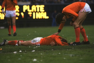 La finale dei Mondiali del 1978 iniziò alle 15 – ora locale – allo stadio Monumental di Buenos Aires. Nella prima mezz’ora entrambe le squadre ebbero varie occasioni per andare in vantaggio: ci riuscì l’Argentina, con un gran gol di Kempes. L’Olanda riuscì a pareggiare solo all’82esimo con Dick Nanninga, entrato per Johnny Rep. Si andò ai supplementari. Al 105esimo minuto Kempes saltò in velocità due difensori e tirò addosso a Jongbloed: la palla passò in qualche modo sotto il corpo del portiere, Kempes la recuperò e segnò a porta vuota. 2-1. Nove minuti dopo, al termine di un’azione piuttosto confusa, la palla rimbalzò sul petto dell’argentino Daniel Bertoni, all’inizio dell’area di rigore: controllo e terzo gol. Finì 3-1.
