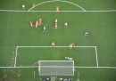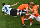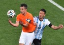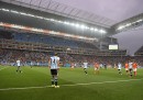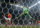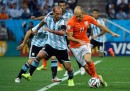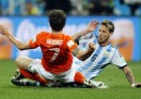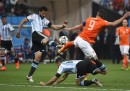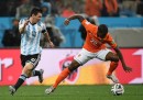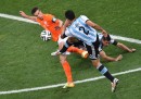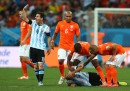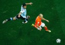 I tempi regolamentari e supplementari erano finiti 0-0. L’Olanda ha fatto un tiro in porta in tutta la partita, supplementari compresi, l’Argentina quattro, ma molti di questi per niente pericolosi. Dopo lo spettacolo della prima semifinale tra Brasile e Germania, banalmente nella seconda semifinale non è successo niente. Nella parte finale della partita forse ha giocato un po’ meglio l’Olanda, ma niente di più. Ai calci di rigore, per l’Olanda sono stati decisivi gli errori di Vlaar e Sneijder, i cui tiri sono stati parati dal portiere argentino Romero. Tutti i quattro tiratori dell’Argentina, invece, hanno fatto gol.