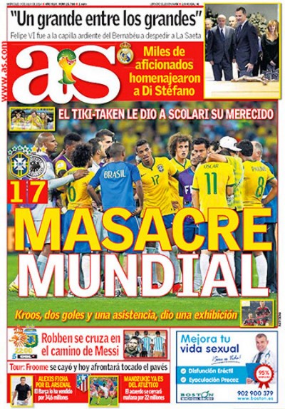 Le prime pagine internazionali sulla sconfitta del Brasile